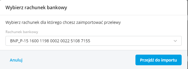 Po wybraniu opcji Importuj pojawi się okno, na którym należy wybrać rachunek bankowy, z którego przelew importujemy.