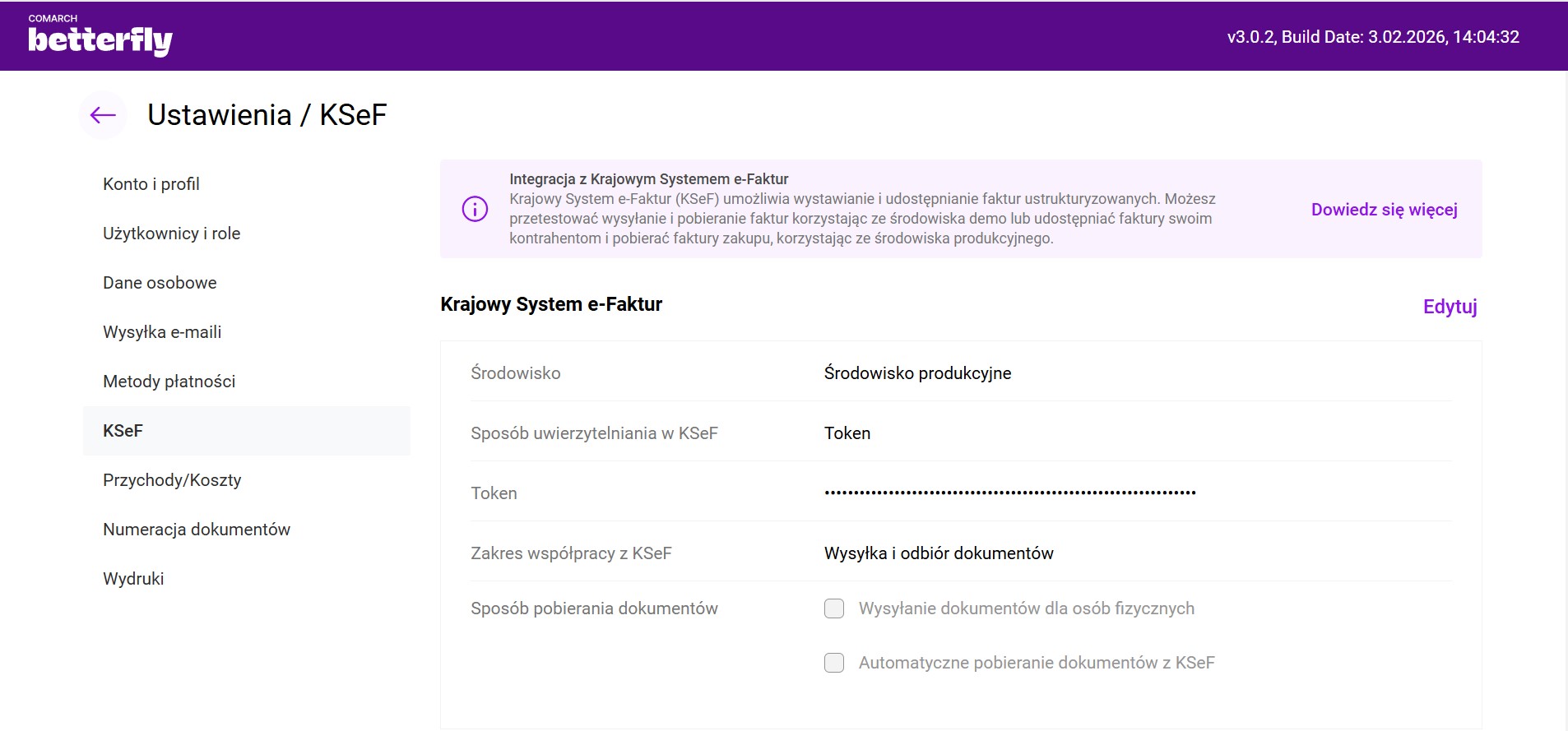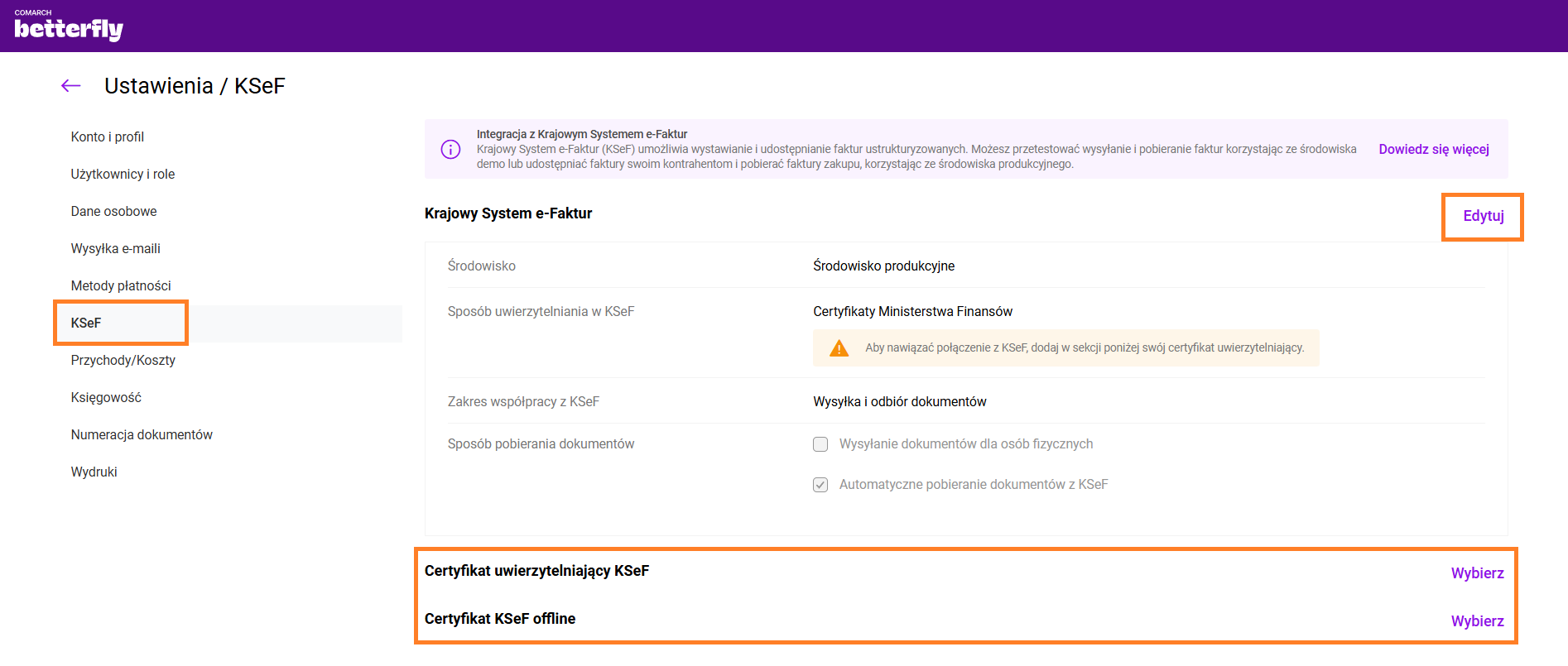Ważne: zmiana dotyczy tylko kont ze skonfigurowaną wymianą z KSeF.