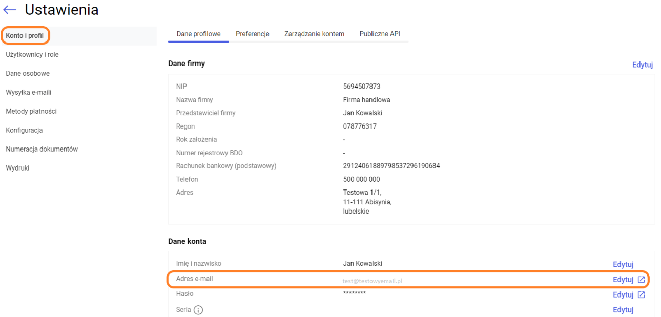 - Moje konto -> Konto i profil/Dane konta