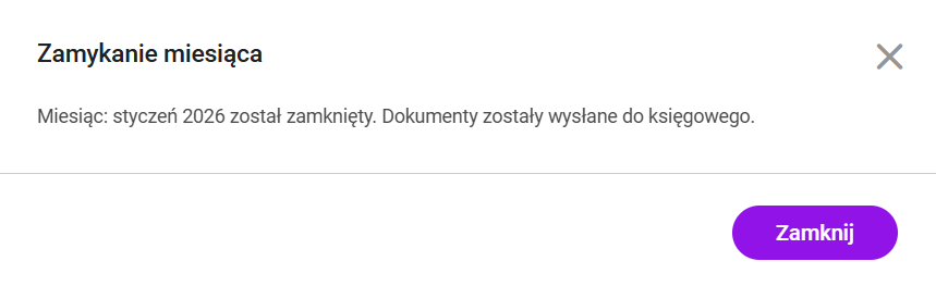 Po wybraniu opcji Tak, wyślij faktury zostaną wysłane do księgowego a po zakończeniu przesyłania pojawi się komunikat potwierdzający (toast):