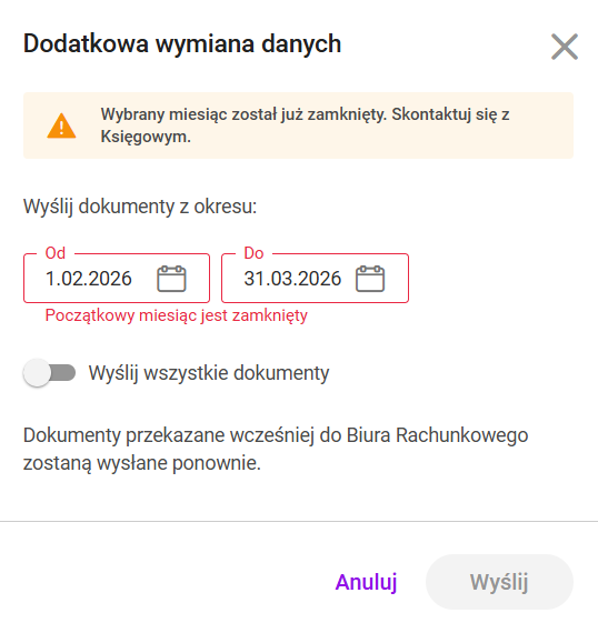 - nie uda się wysłać dokumentu do Biura Rachunkowego