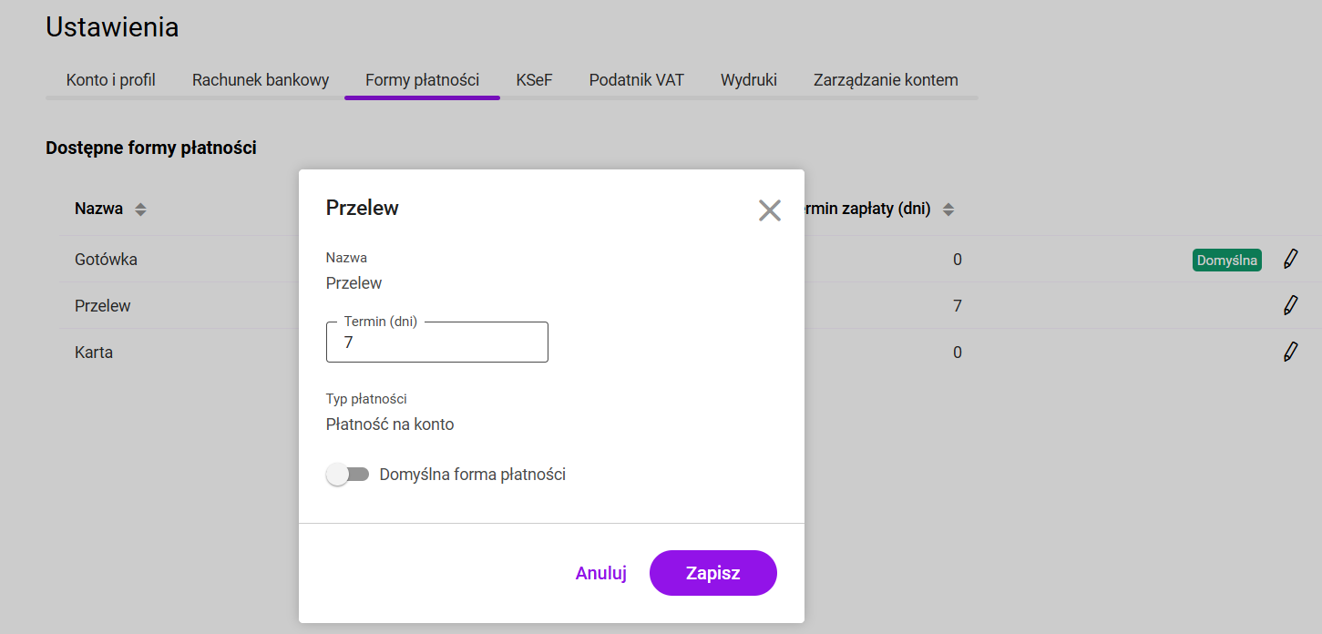 Jak zmienić domyślną formę płatności?