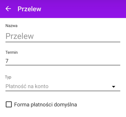 W aplikacjach mobilnych formy płatności dostępne są w menu Ustawienia/ Formy płatności.