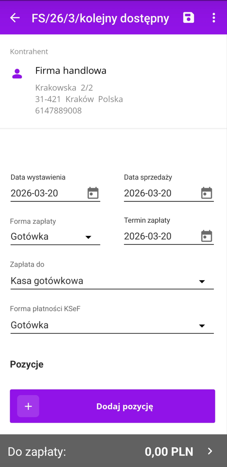 Zmiana numeru dokumentu jest również możliwa w aplikacjach mobilnych i jest dostępna z poziomu formularza faktury w polu: Zmień numer.